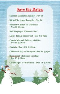 - Decorate Church for Christmas – Nov 23 @ 4pm